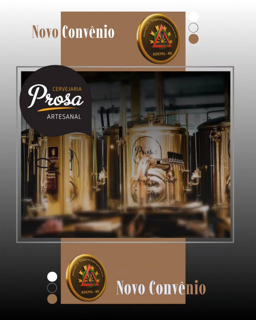 A Associação dos Delegados de Polícia de MS firmou novo convênio, agora com a Cervejaria Prosa, garantindo desconto exclusivo aos associados. Para usufruir do benefício, basta se identificar como associado no momento do atendimento. A Adepol-MS segue trabalhando continuamente para ampliar parcerias que promovam bem-estar, lazer e qualidade de vida aos membros da carreira.
