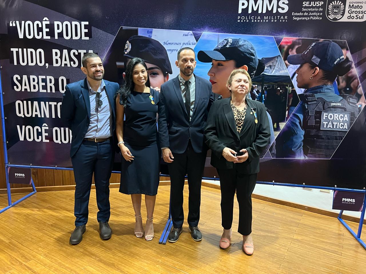 Durante a solenidade, a Delegada de Polícia Célia Maria Bezerra, atual Diretora da Diretoria Social da Adepol-MS e a Delegada associada Alana Tissia Lima dos Santos Werneck receberam a Medalha “Tenente-Coronel PM Ana Neize Baltha”, uma das mais altas condecorações da Polícia Militar, concedida a profissionais que se destacam pelo trabalho e dedicação no combate à violência contra a mulher. Esta foi a segunda vez que a honraria foi entregue, reforçando a importância de premiar ações que contribuem para a melhoria da sociedade.