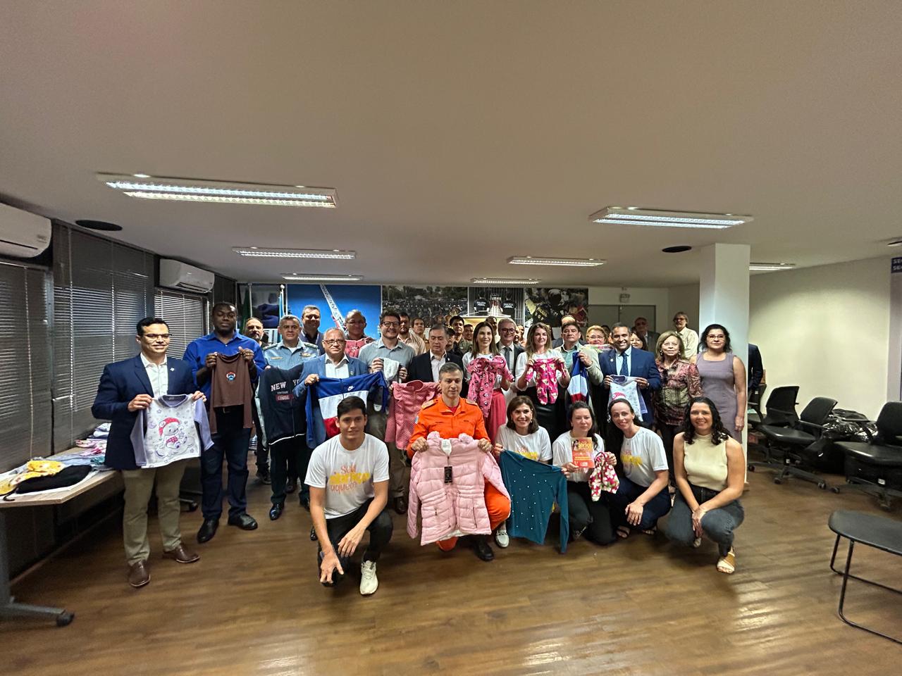 Na manhã desta terça-feira (13), a Associação dos Delegados de Polícia do Mato Grosso do Sul (Adepol-MS), representada pelo presidente Delegado André Matsushita e pela Diretora de Ações Sociais Delegada Célia Maria Bezerra da Silva, participou de uma ação da campanha do agasalho 2025 do Governo do Estado — “Seu Abraço Me Aquece”, realizada na Secretaria de Justiça e Segurança Pública (Sejusp).