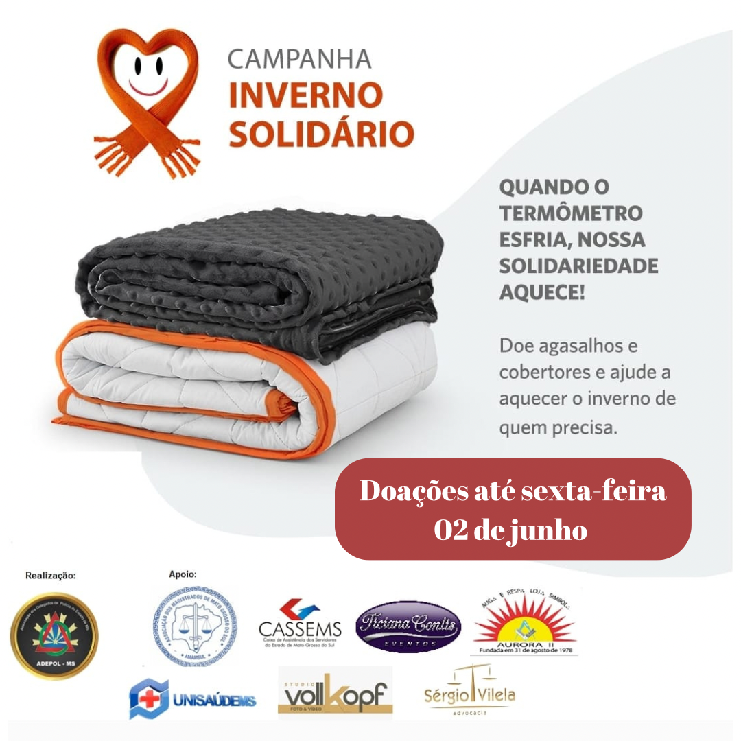 Devido às baixas temperaturas dos últimos dias, a Adepol-MS e demais parceiros decidiram antecipar a entrega dos agasalhos arrecadados, como casacos e cobertores, para pessoas em situação de vulnerabilidade social, em Campo Grande. As doações podem ser feitas até esta sexta-feira (02) na sede da Adepol ou com as instituições parceiras.