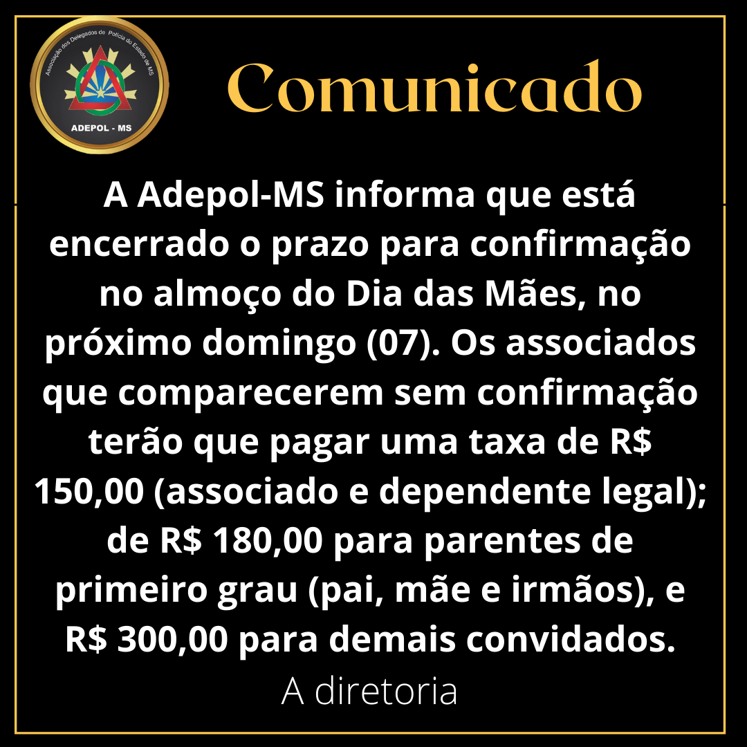 Home»Notícias»Comunicado – almoço Dia das Mães