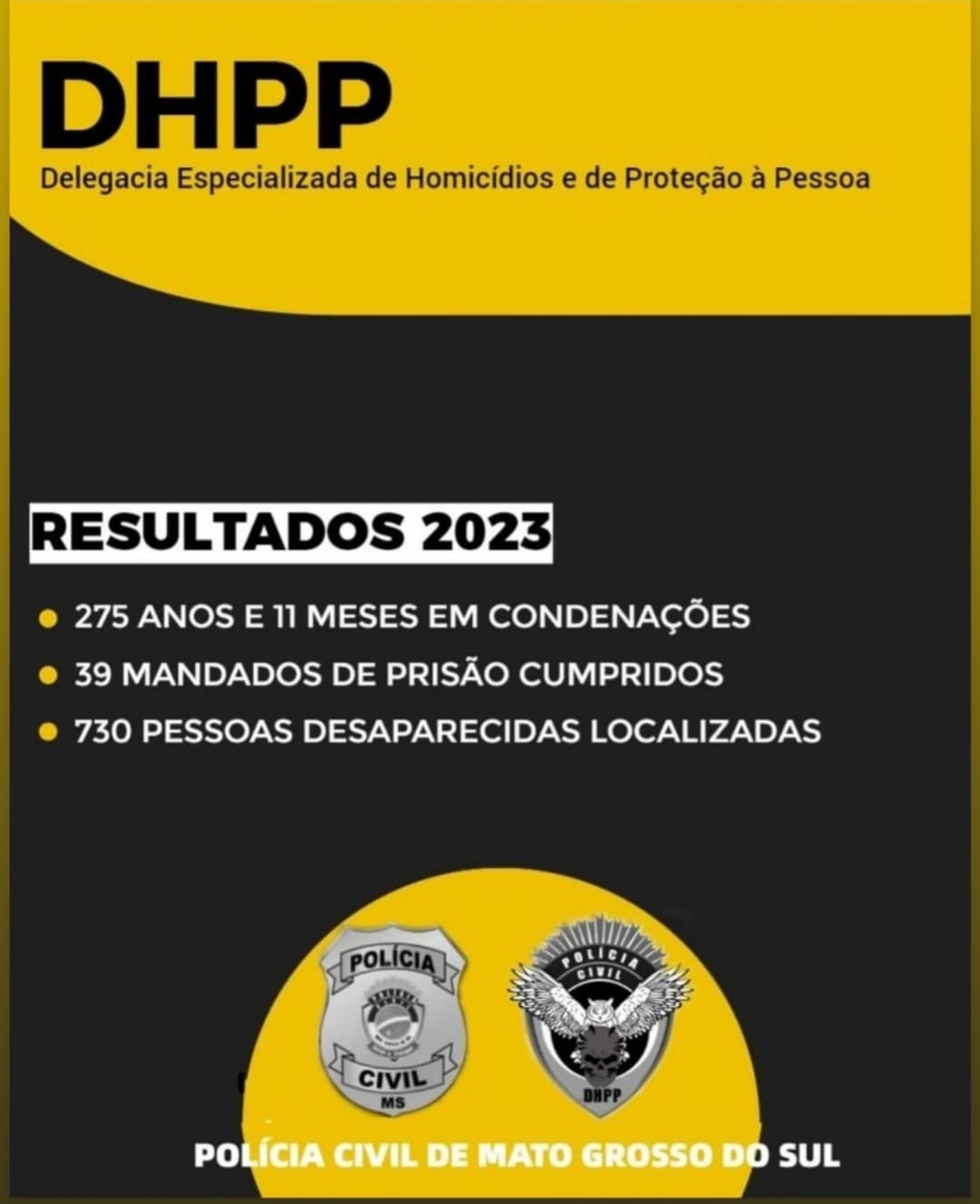 A Delegacia Especializada de Repressão aos Crimes de Homicídios e de Proteção à Pessoa (DHPP) divulgou nesta quarta-feira (13/12) um balanço das ações realizadas em 2023, que resultaram em mais de 270 anos em condenações no período. Por meio do trabalho aprimorado e contínuo dos policiais da unidade, a elucidação dos crimes de homicídios, em especial na Capital sul-mato-grossense, tem se revelado cada ano mais eficiente.
