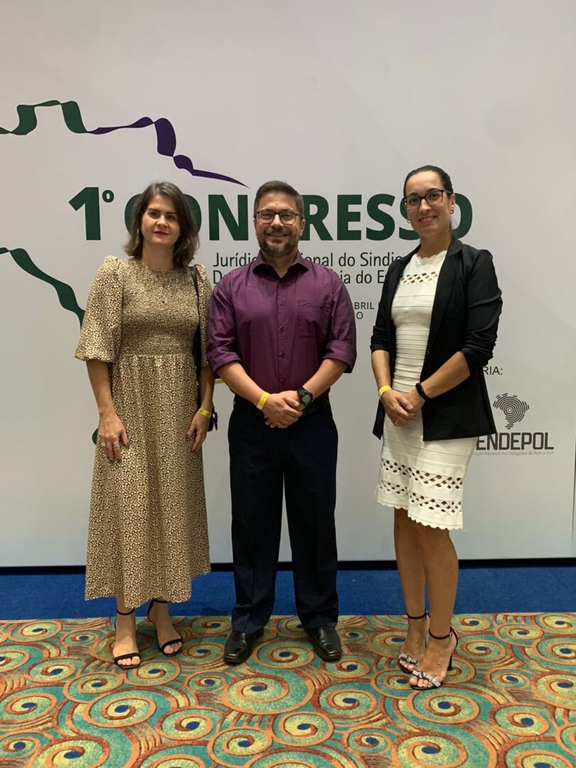 A presidente da Adepol-MS, Delegada de Polícia Aline Gonçalves Sinnott Lopes, e os diretores da instituição, Delegado de Polícia Bruno Henrique Urban, e a Delegada de Polícia Marília de Brito Martins, representam a associação no 1º Congresso Jurídico Nacional dos Delegados de Polícia, que teve início na noite desta quinta-feira (28) e segue até sábado em Pirenópolis-GO.