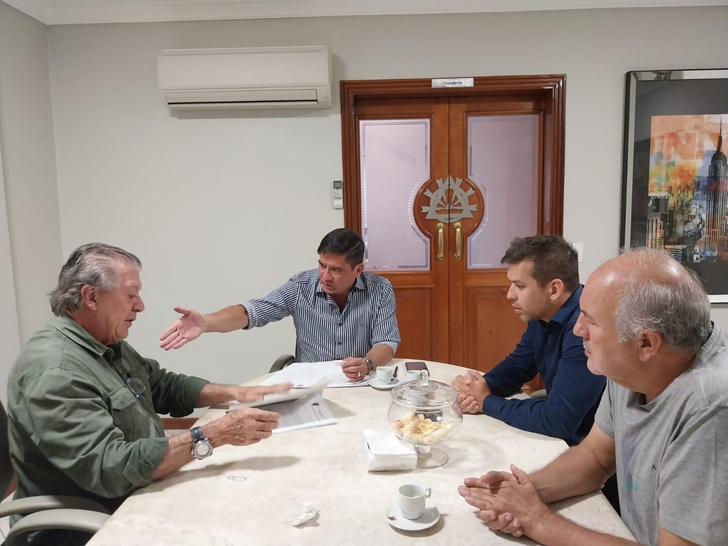 Na manhã desta quarta feira (12) o Presidente da ADEPOL-MS, Delegado André Matsushita, o Tesoureiro Delegado José Roberto de Oliveira Junior e o Delegado Associado Alexandre Amaral Evangelista receberam o Gerente de Negócios da UNIMED João Batista de Carvalho, para tratar do reajuste anual das mensalidades.