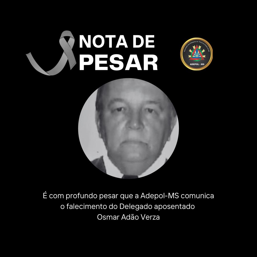 É com profundo pesar que a ADEPOL-MS comunica o falecimento do Dr. Osmar Adão Verza, Delegado de Polícia aposentado.