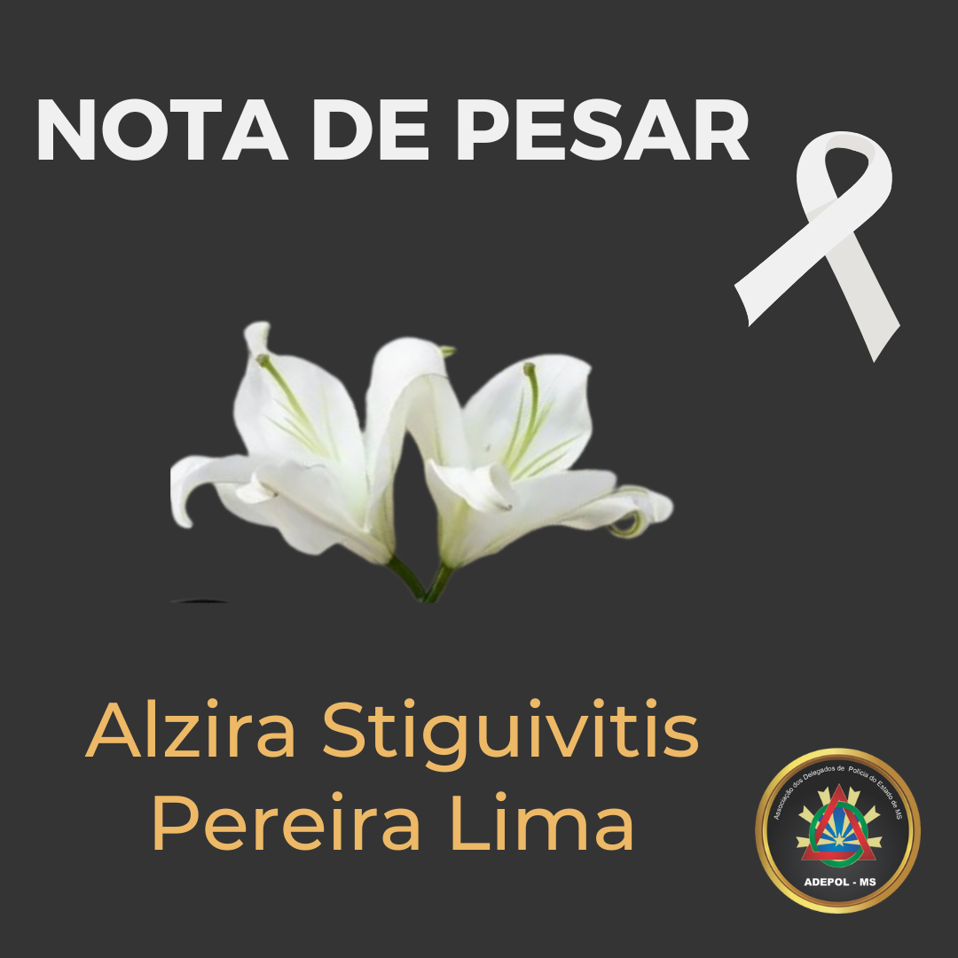 É com profundo pesar que a Adepol-MS recebe a notícia do falecimento da senhora Alzira Stiguivitis Pereira Lima, mãe do colega Delegado de Polícia Adilson Stiguivitis Lima.