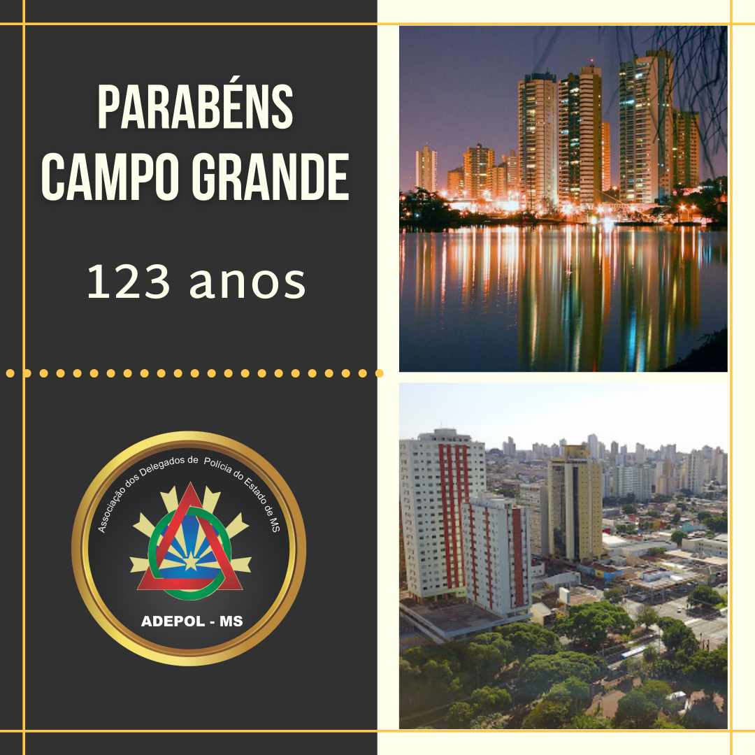 Parabéns Campo Grande! Terra acolhedora, que recebe a todos que aqui chegam, cheios de sonhos. A Adepol-MS tem orgulho de fazer parte desta história.
