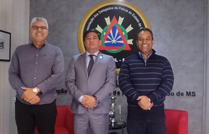 O presidente da Associação dos Delegados de Polícia de Mato Grosso do Sul (Adepol-MS), Delegado André Matsushita, recebeu nesta quinta-feira, 12 de junho, a visita institucional do presidente do SINPOL-MS José Nascimento Sobrinho, acompanhado do diretor da entidade e perito oficial papiloscopista, Cristiano Paroba.
