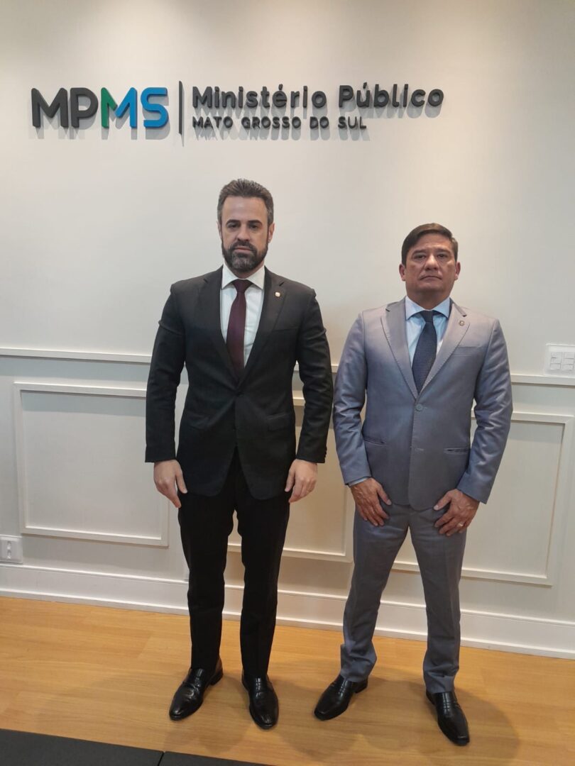 Nesta quinta-feira (12), o presidente da Associação dos Delegados de Polícia de Mato Grosso do Sul (Adepol-MS), delegado André Matsushita, realizou uma visita institucional ao Procurador-Geral de Justiça, Romão Ávila Milhan Júnior, na sede da Procuradoria-Geral de Justiça.